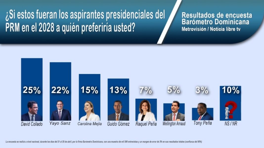 Santo Domingo.– Una nueva encuesta de la firma Barómetro revela un escenario altamente competitivo dentro del Partido Revolucionario Moderno (PRM) de cara a las primarias presidenciales de 2028.